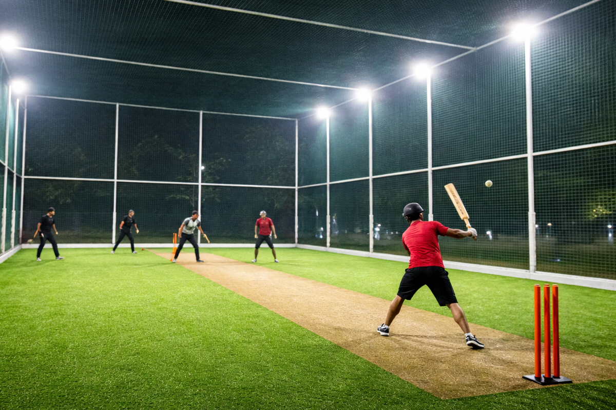 - Our high-quality artificial turf, professional cricket nets, and bright flood lights create the perfect environment for exciting matches with friends and teams.